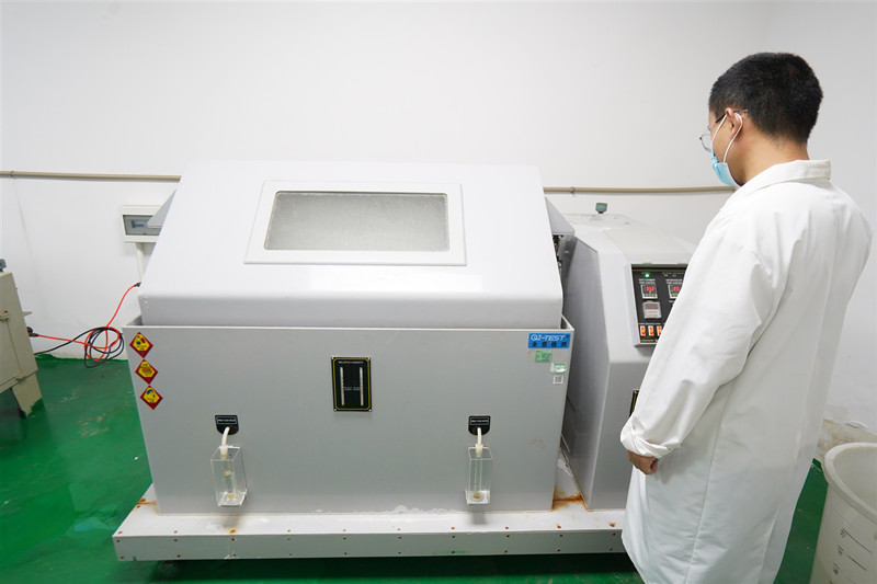 另一類為人工加速模擬鹽霧環(huán)境試驗。人工模擬鹽霧環(huán)境試驗是利用一種具有一定容積空間的試驗設(shè)備——鹽霧試驗箱,在其容積空間內(nèi)用人工的方法,造成鹽霧環(huán)境來對產(chǎn)品的耐鹽霧腐蝕性能質(zhì)量進(jìn)行考核。它與天然環(huán)境相比,其鹽霧環(huán)境的氯化物的鹽濃度,可以是一般天然環(huán)境鹽霧含量的幾倍或幾十倍,使腐蝕速度大大提高,對產(chǎn)品進(jìn)行鹽霧試驗,得出結(jié)果的時間也大大縮短。如在天然暴露環(huán)境下對某產(chǎn)品樣品進(jìn)行試驗,待其腐蝕可能要1年,而在人工模擬鹽霧環(huán)境條件下試驗,只要24小時,即可得到相似的結(jié)果。