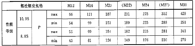 螺紋預(yù)拉力應(yīng)控制在下表之內(nèi):